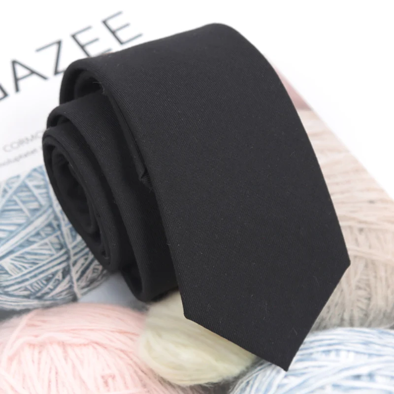 Gravata masculina de algodão preto sólido gravata gola estreita gravata fina casamento negócios casaual festa terno camisa presente para homem acessório