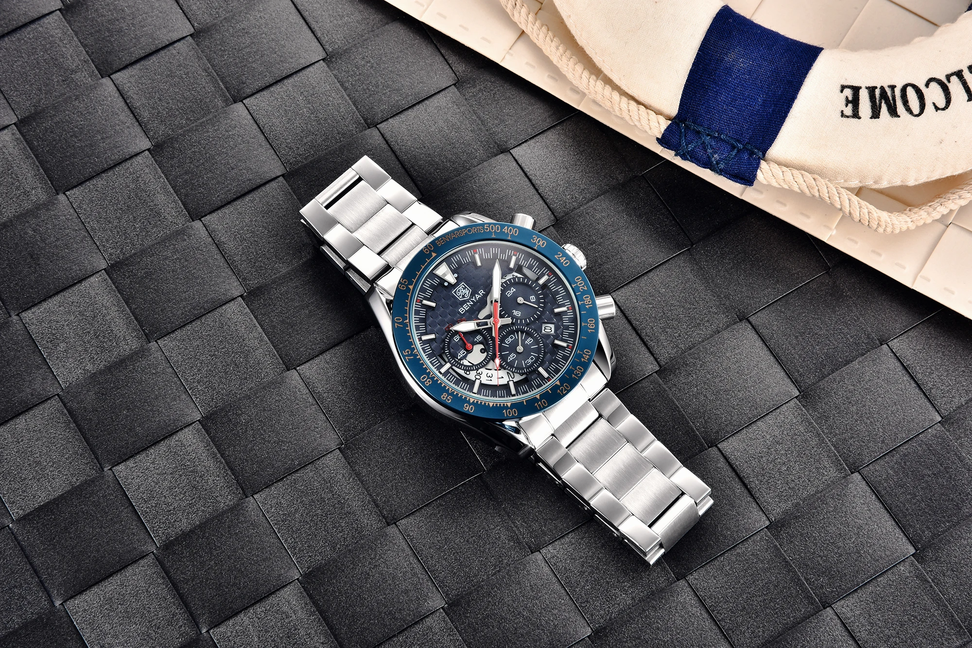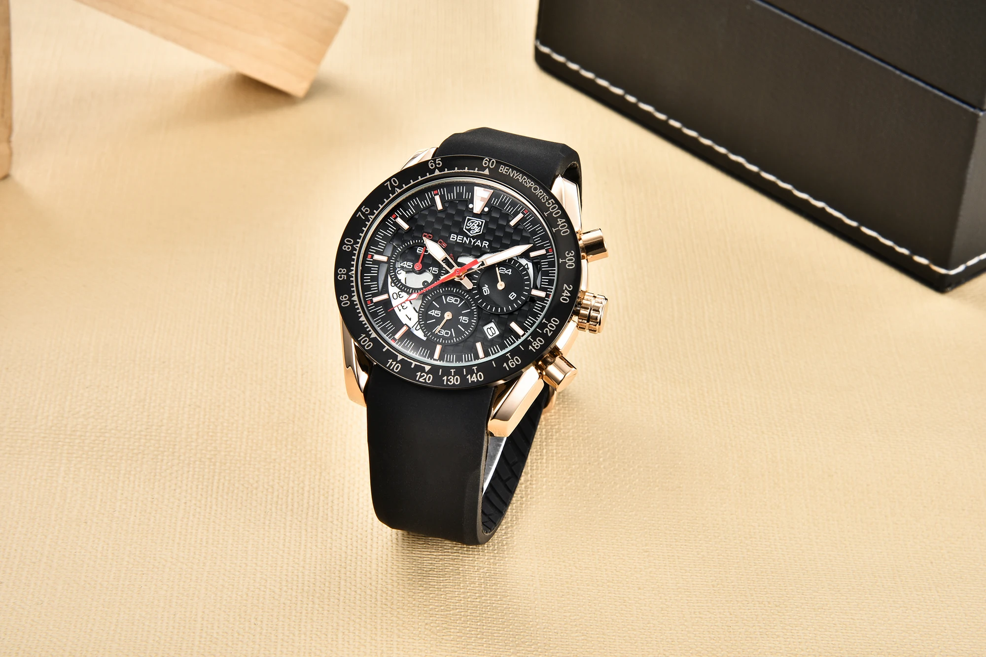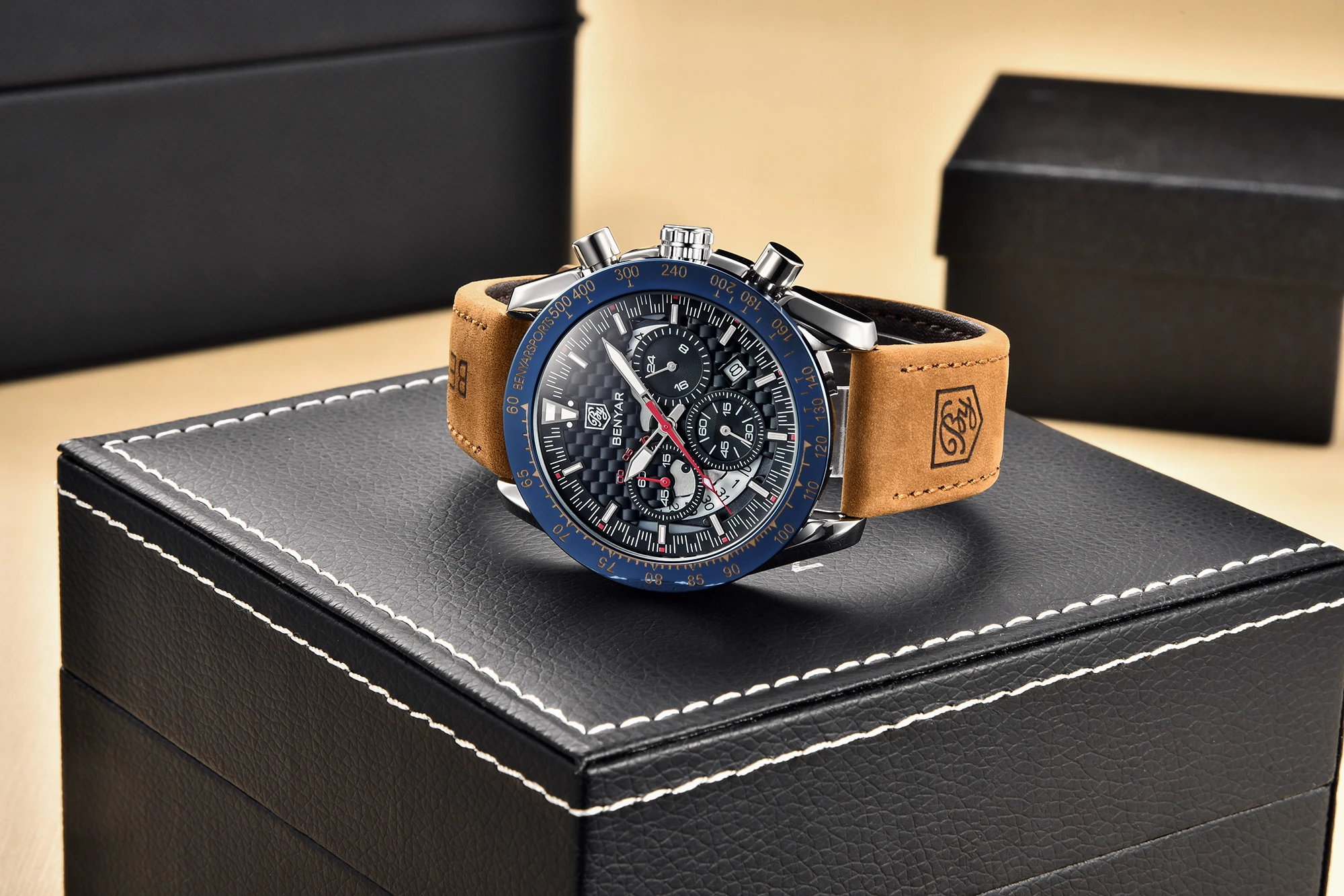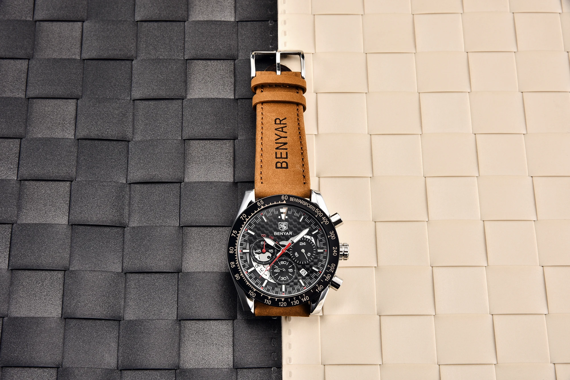 • Pulseira de couro de luxo :Experimente o luxo e o conforto do relógio masculino Benyar com sua pulseira de couro de primeira qualidade, projetada para o cavalheiro elegante que valoriza tanto a forma quanto a função.